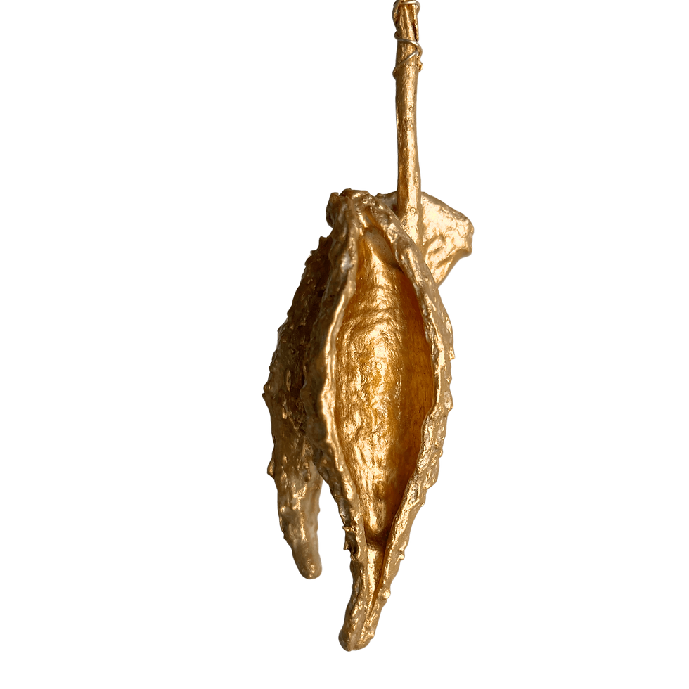 These are one-of-a-kind seasonal objects, hand-built from salvaged materials and natural elements. Each piece contains a preserved botanical form, finished in metallic tones. They’re not tied to a single holiday — made for hanging, resting, or keeping through the winter months and beyond. Available through December 28, after which remaining objects will return to the studio to be reworked into future pieces.